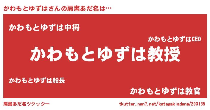 | 男性向けラノベタイトル風あだ名 | 『おまえをオタクにしてやるから、俺をかわもとゆずはにしてくれ! 』 |