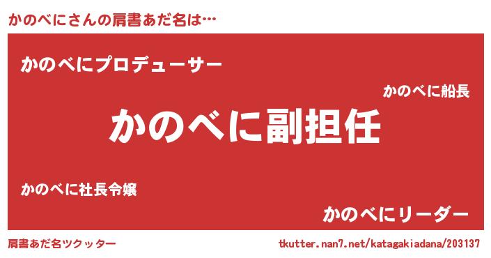 | ヘコむあだ名 | 『かのべに(遠い目)』『かのっちょ』 |