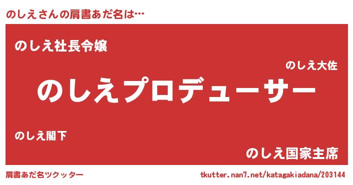 | 欧米人風あだ名 | 『アンジェラ・のしえ』『マイケルのしえ』 |