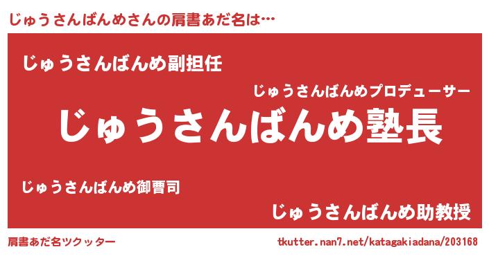 | ヘコむあだ名 | 『じゅっちょ』『じゅうさんばんめ(遠い目)』 |