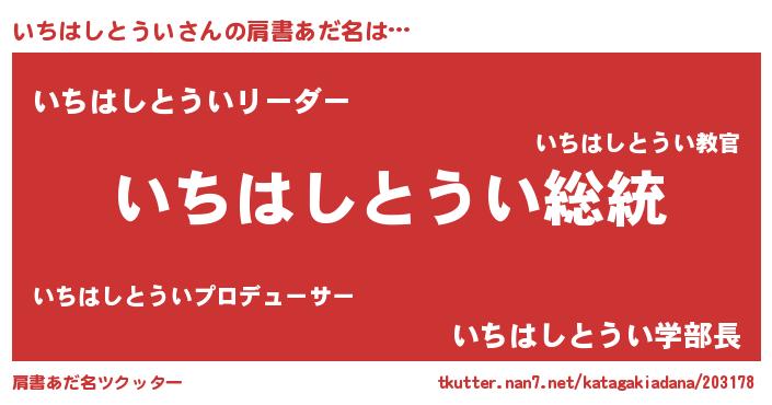 | 意味不明あだ名 | 『自称いちはしとうい』 |
