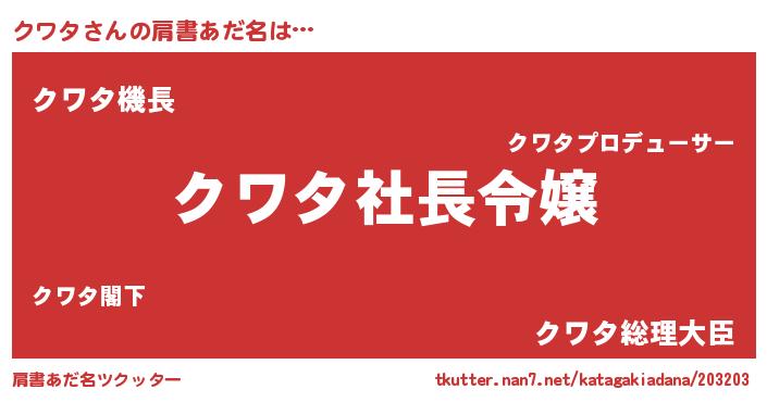 | 男性向けラノベタイトル風あだ名 | 『クワタアートオンライン』 |