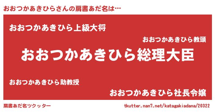 | 男性向けラノベタイトル風あだ名 | 『やはりおおつかあきひらの青春ラブコメはまちがっている 』 |