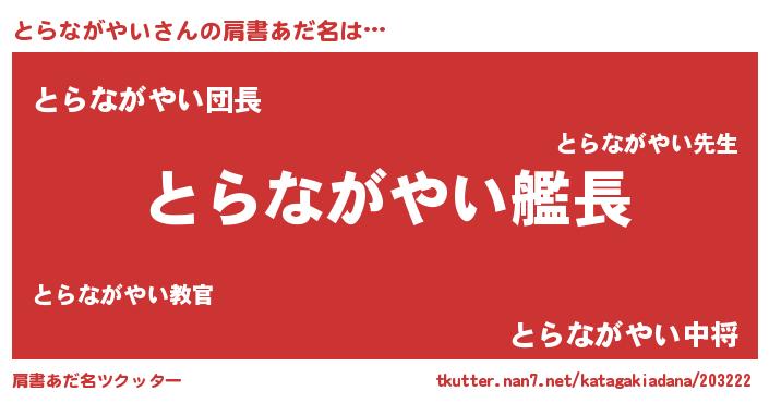 | 胡散臭い通販商品みたいなあだ名 | 『信頼と実績のネックレス…その名も「とらながやい」』 |