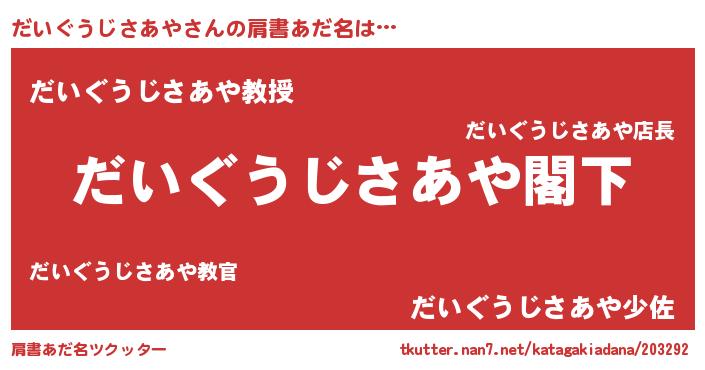 | 意味不明あだ名 | 『自称だいぐうじさあや』 |