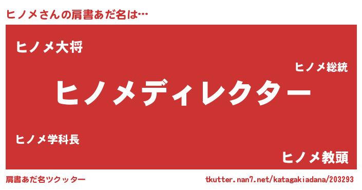 | ヘコむあだ名 | 『ヒノメ(笑)』『ヒノっふぃ~』 |