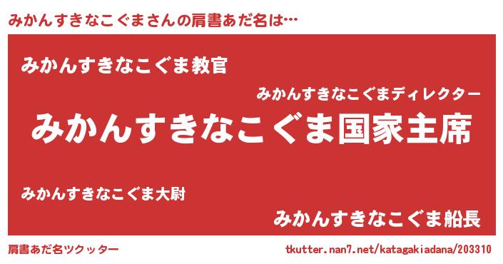 | 意味不明あだ名 | 『みかんすきなこぐまフォーエバー』 |