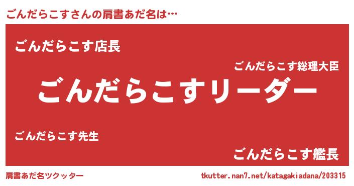 | ピコ太郎風あだ名 | 『ゴン十郎』『ゴコ史郎』『ピゴ四郎』 |