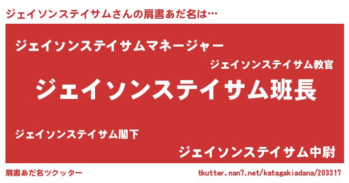 | ポケモン風あだ名 | 『ヒジェイソンステイサム』『ジェゴンZ』 |