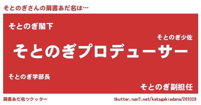| ヒーロー風カッコイイあだ名 | 『超時空戦士ソトノギ』『ネオソトノギ』 |