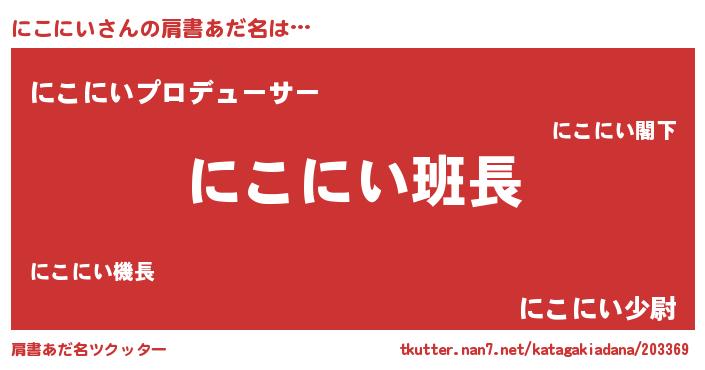 | 意味不明あだ名 | 『とにかく怪しいにこにい』 |