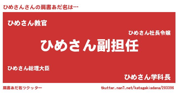 | 男性向けラノベタイトル風あだ名 | 『ひめさんという概念が存在しない退屈な世界 』 |
