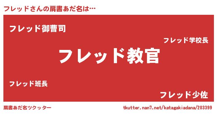 | 男性向けラノベタイトル風あだ名 | 『魔弾の王とフレッド』『フレッドの憂鬱』 |
