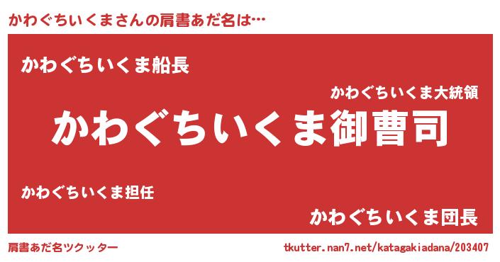 | 男性向けラノベタイトル風あだ名 | 『かわぐちいくまの憂鬱』 |