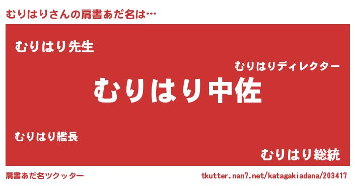 | ヘコむあだ名 | 『むりはり(小並感)』『むりお』 |
