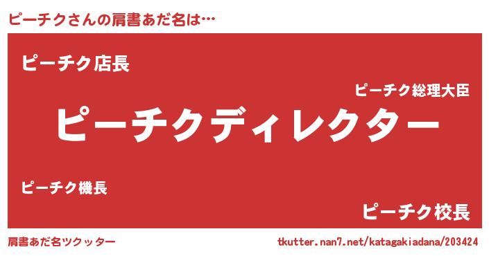 | 男性向けラノベタイトル風あだ名 | 『ピーチクに滅ぼされるだけの簡単なお仕事です』 |