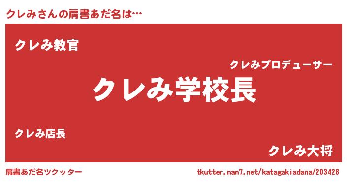 | ヘコむあだ名 | 『クレもー』『クレみ(苦笑)』『豆乳』 |