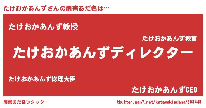 | 男性向けラノベタイトル風あだ名 | 『たけおかあんずに滅ぼされるだけの簡単なお仕事です』 |