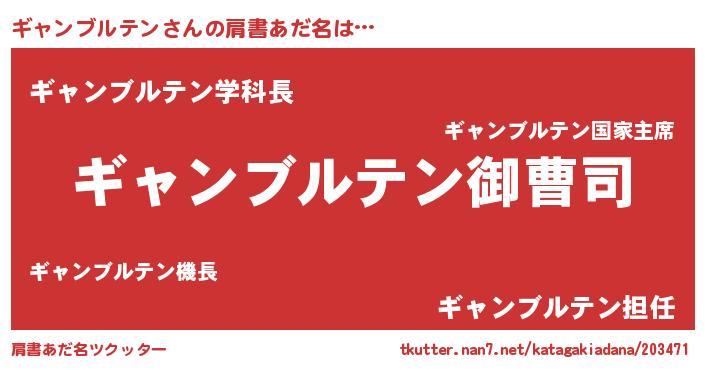 | 男性向けラノベタイトル風あだ名 | 『ギャンブルテンの憂鬱』 |