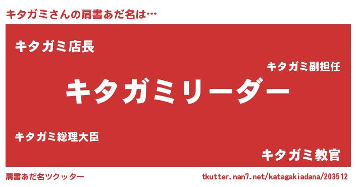 | 意味不明あだ名 | 『とにかく怪しいキタガミ』 |