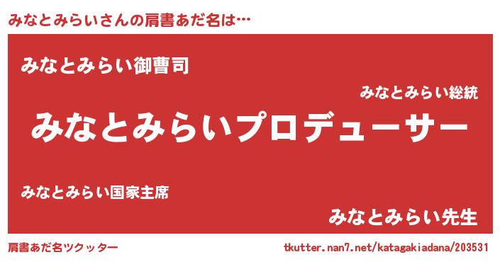 | ヒーロー風カッコイイあだ名 | 『スーパーミナトミライ』『仮面ミナダー』 |