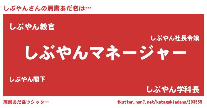 | 男性向けラノベタイトル風あだ名 | 『しぶやんに滅ぼされるだけの簡単なお仕事です』 |
