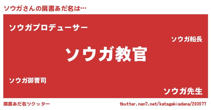 | ヘコむあだ名 | 『ソウガ(苦笑)』『ソウもー』 |