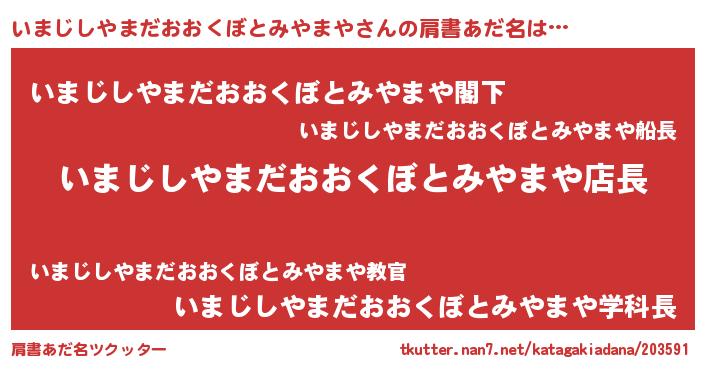| 男性向けラノベタイトル風あだ名 | 『いまじしやまだおおくぼとみやまやの憂鬱』 |