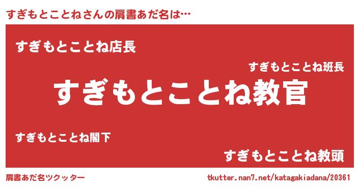 | 意味不明あだ名 | 『住所不定無職すぎもとことね(5歳)』 |