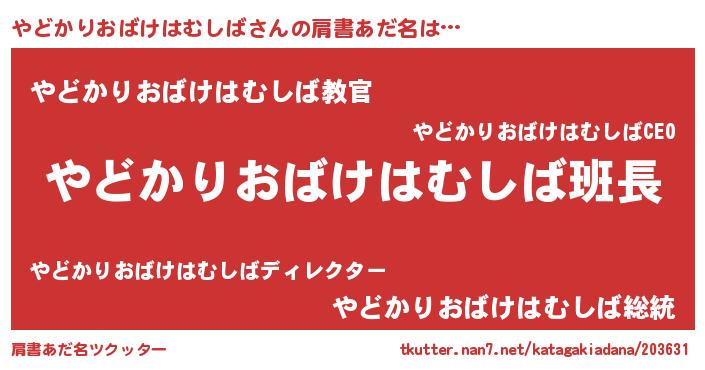 | 女子向けラノベタイトル風あだ名 | 『やどかりおばけはむしばは平凡を望む』 |