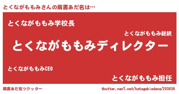 | ヘコむあだ名 | 『とくながももみ(爆)』『とくにゅー』 |