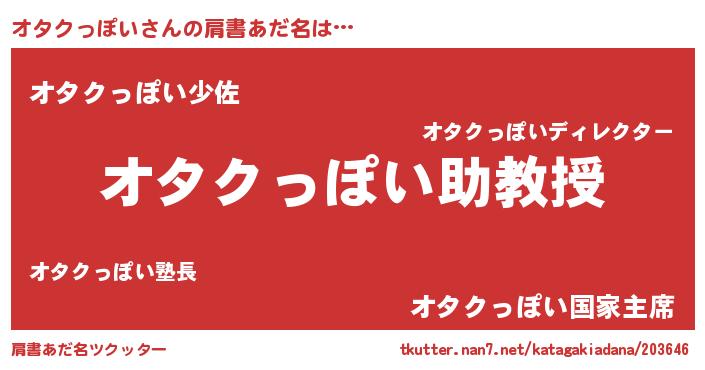 | 男性向けラノベタイトル風あだ名 | 『おまえをオタクにしてやるから、俺をオタクっぽいにしてくれ! 』 |