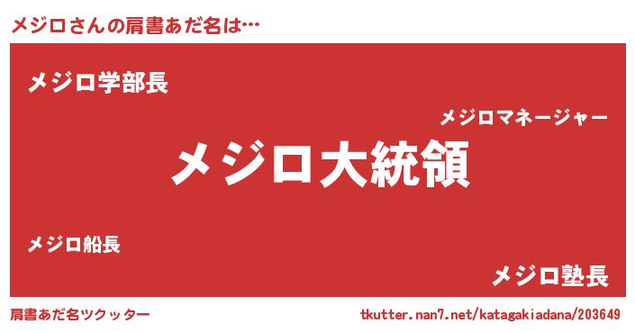 | 女子向けラノベタイトル風あだ名 | 『メジロの雑貨屋さん』『メジロ恋絵巻』 |