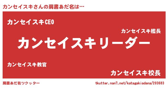 | 男性向けラノベタイトル風あだ名 | 『カンセイスキの嫁は女の子じゃないと思った?』 |