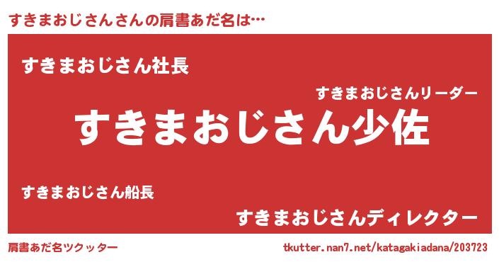 | 男性向けラノベタイトル風あだ名 | 『すきまおじさん~年齢イコール彼女いない歴の魔法使い~』 |