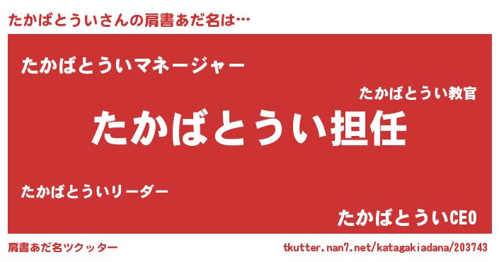 | 意味不明あだ名 | 『永久保存たかばとうい』 |