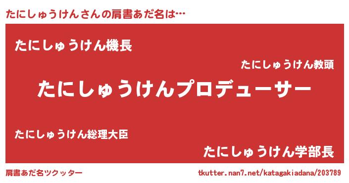 | 欧米人風あだ名 | 『アンジェラ・たにしゅうけん』 |