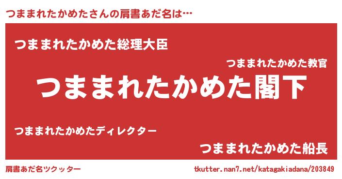 | 意味不明あだ名 | 『自称つままれたかめた』 |