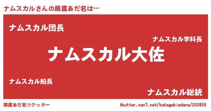 | 胡散臭い通販商品みたいなあだ名 | 『信頼と実績のサプリメント…その名も「ナムスカル」』 |