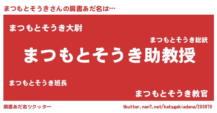 | ヘコむあだ名 | 『まつを』『なまこ酢』『まつにゅー』 |