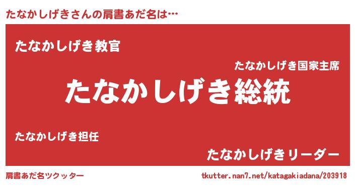 | 意味不明あだ名 | 『自称たなかしげき』 |