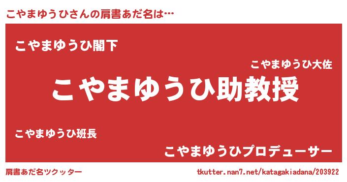 | 男性向けラノベタイトル風あだ名 | 『ノーゲーム・ノーコヤマユウヒ』 |