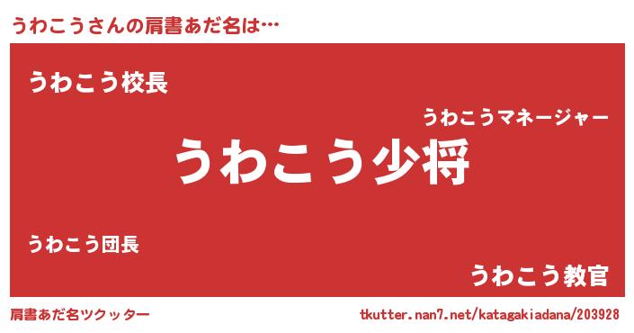 | ピコ太郎風あだ名 | 『ピコウ郎』『ウワ四郎』『ウコ次郎』 |