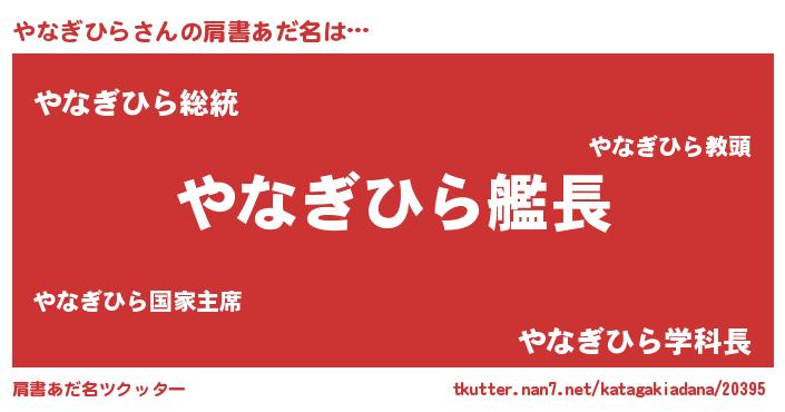 | 意味不明あだ名 | 『自称やなぎひら』『永久保存やなぎひら』 |