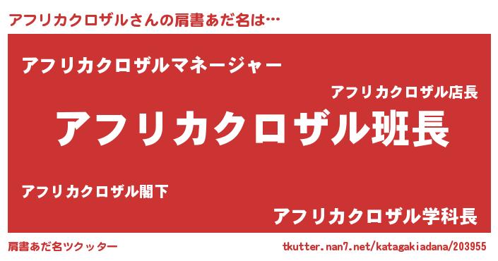 | 胡散臭い通販商品みたいなあだ名 | 『信頼と実績のサプリメント…その名も「アフリカクロザル」』 |