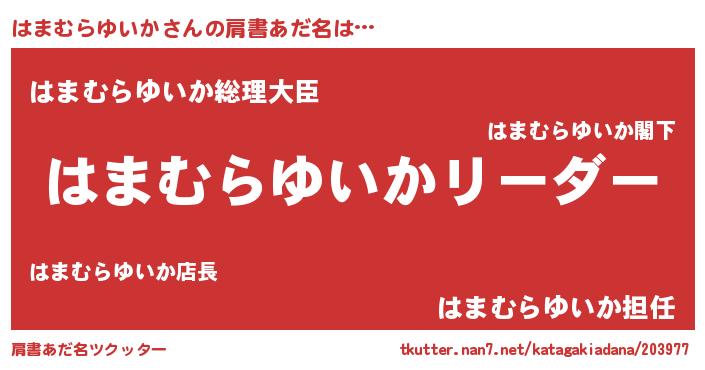 | ヒーロー風カッコイイあだ名 | 『暗黒騎士ハマ』『ネオハマムラユイカ』 |