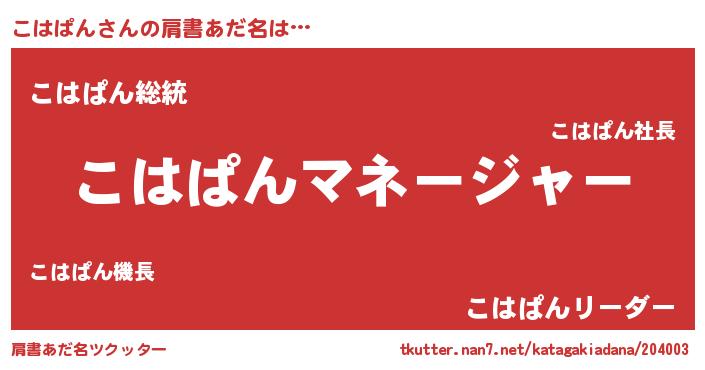 | 欧米人風あだ名 | 『アンジェラ・こはぱん』 |