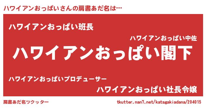 | ヒーロー風カッコイイあだ名 | 『究極戦士ハワイアンオッパイ』 |