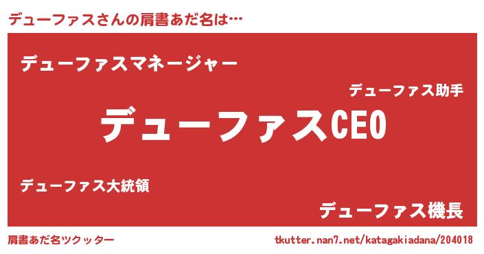 | ファンタジー風あだ名 | 『デュフェル』『カークデュラー』 |