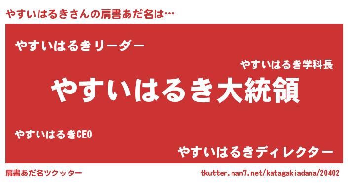 | ファンタジー風あだ名 | 『エターナルヤスイハルキー』 |
